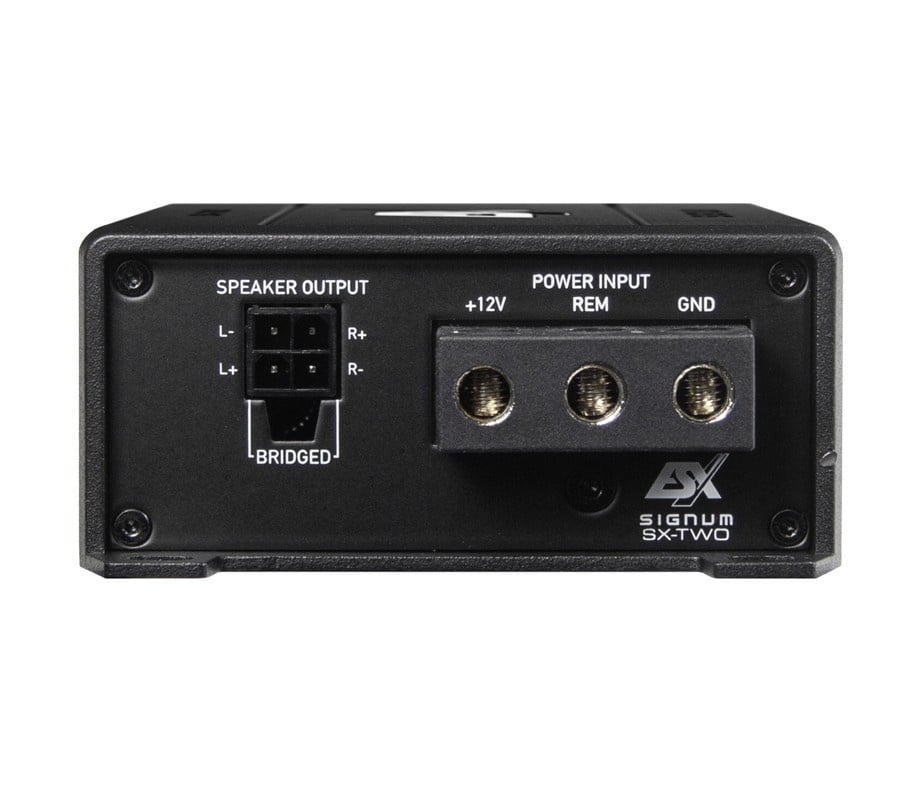 De ESX Signum SX-TWO is dé ideale oplossing voor wie een krachtige 2-kanaals versterker zoekt in een ultra-compact formaat. Dankzij de moderne Klasse D technologie levert deze mini-versterker indrukwekkend vermogen, terwijl hij weinig ruimte inneemt en eenvoudig te installeren is in vrijwel iedere auto.