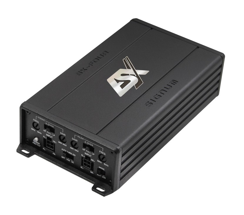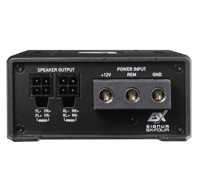 De ESX Signum SX-FOUR is een compacte 4-kanaals Klasse D versterker uit de populaire Signum SX-serie van ESX. Deze mini-versterker is speciaal ontwikkeld voor automobilisten die hun geluidssysteem willen upgraden zonder veel ruimte op te offeren, maar toch willen profiteren van krachtig en helder geluid.