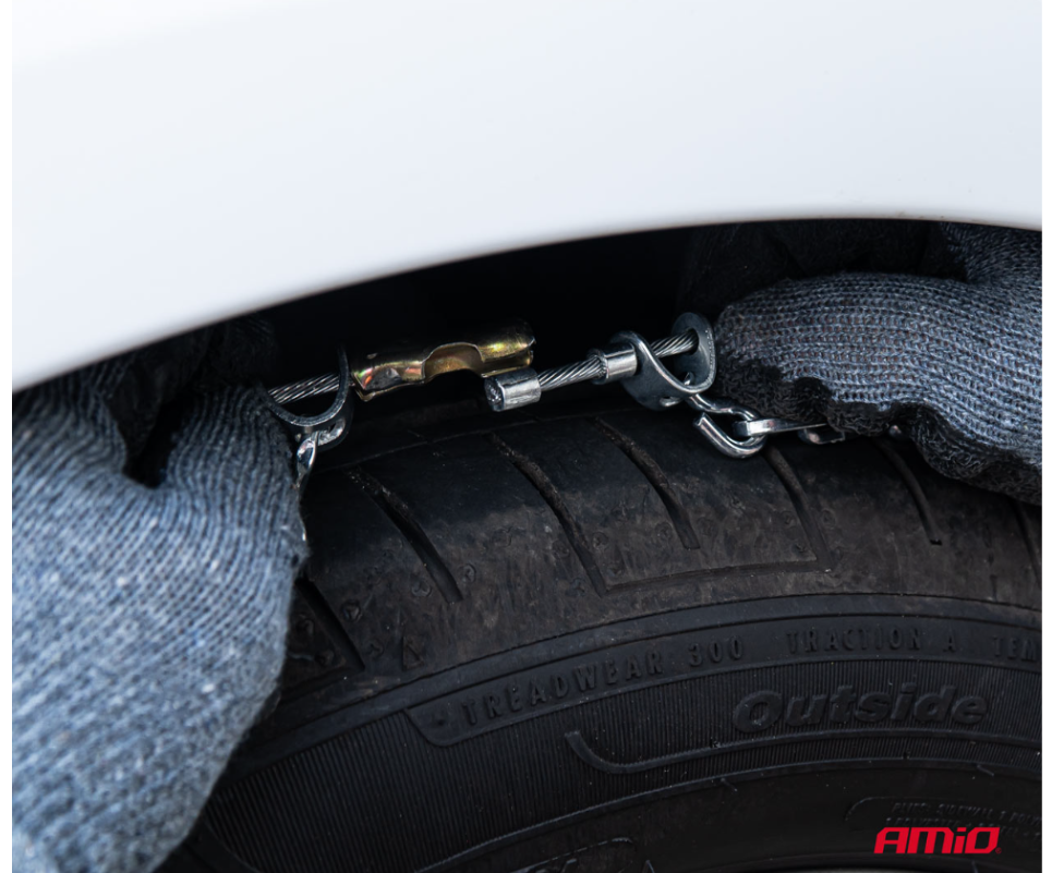 Het asymmetrische, ruitvormige kettingpatroon beschermt het voertuig tegen slippen, vooral in bochten. Snelle installatie zonder dat het voertuig hoeft te worden ingehaald. Compatibel met ABS en ESP. Tweetraps kettingspanning – moet direct na installatie en na enkele meters rijden worden aangespannen.