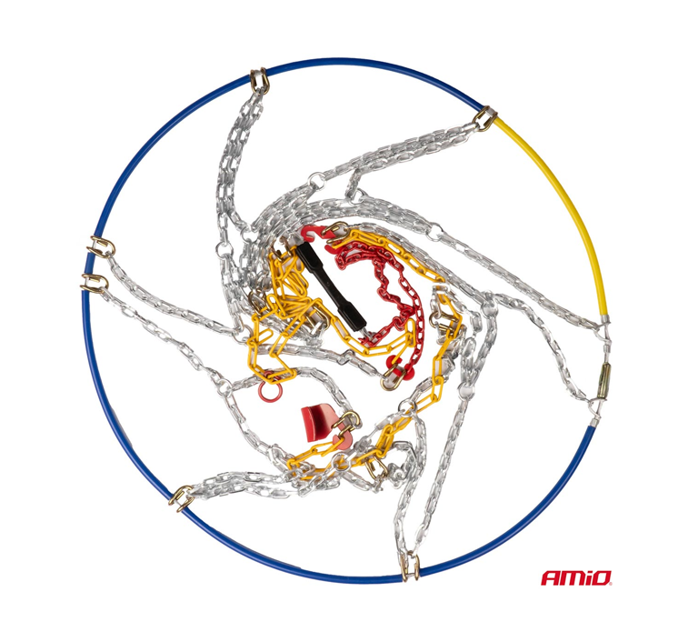 Tweetraps kettingspanning – vereist direct na installatie en na enkele meters rijden het aanspannen van de ketting. Kan worden gebruikt op zowel de voor- als achteras, in voertuigen uitgerust met ABS en ESP. De set bevat twee kettingen voor beide aandrijfwielen.