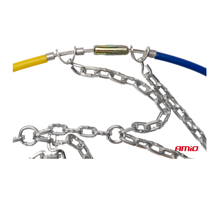 De ketting is gemaakt van gehard staal en heeft een asymmetrisch, ruitvormig patroon. Dit verbetert de grip van de wielen op besneeuwde of ijzige ondergronden. De sterke schakels zijn 12 mm hoog en vierkant in doorsnede.