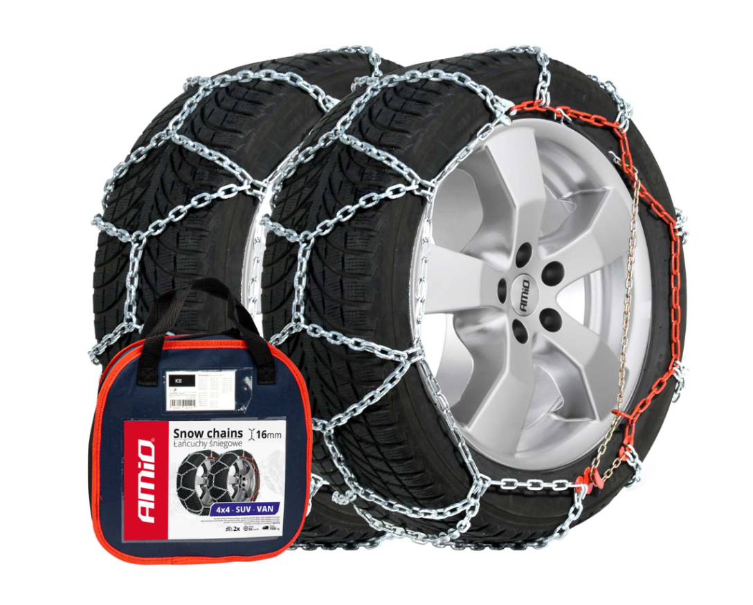 De ketting is gemaakt van gehard staal en heeft een asymmetrisch, ruitvormig patroon. Dit verbetert de grip van de wielen op besneeuwde of ijzige ondergronden. De sterke schakels zijn 16 mm hoog en vierkant in doorsnede.
