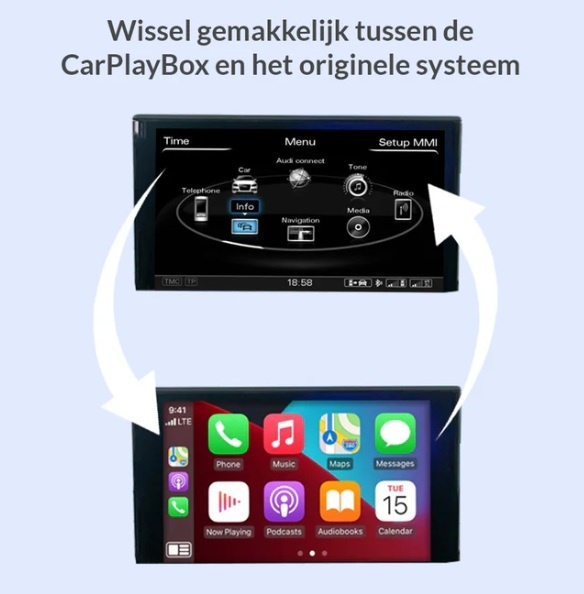 Onze CarPlayBox integreert naadloos moderne functies zoals CarPlay en Android Auto met je originele scherm, terwijl de fabrieksuitstraling behouden blijft.