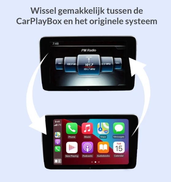 Onze CarPlayBox integreert naadloos moderne functies zoals CarPlay en Android Auto met je originele scherm, terwijl de fabrieksuitstraling behouden blijft.