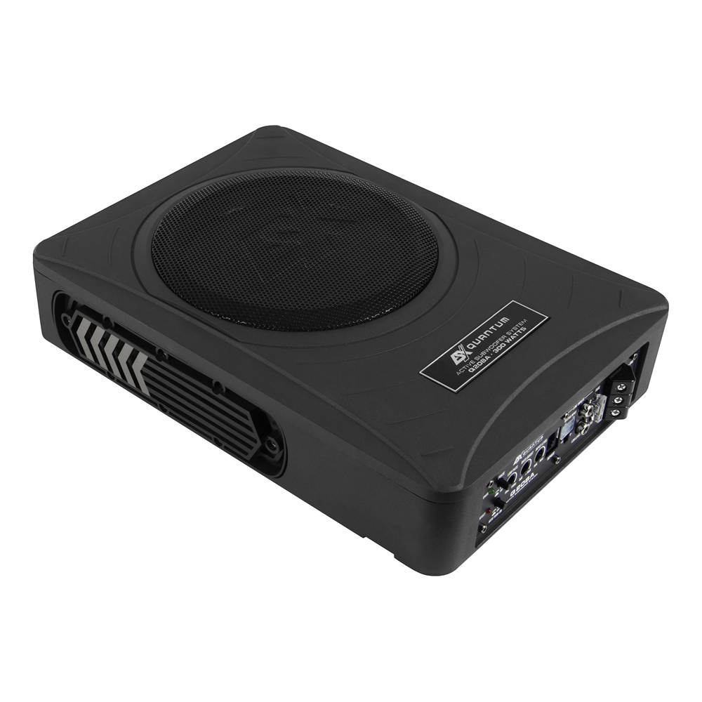 Met het QUANTUM actieve subwoofersysteem in plat design biedt ESX de basoplossing voor extreem kleine ruimtes.De zeer slanke behuizing met een geïntegreerde speciale woofer en een echte klasse A / B-versterker is ideaal voor kleine auto's , Sportcoupés en cabrio's en vindt overal een plaats, of het nu onder of achter de stoel is of in een opbergvak in de kofferbak.