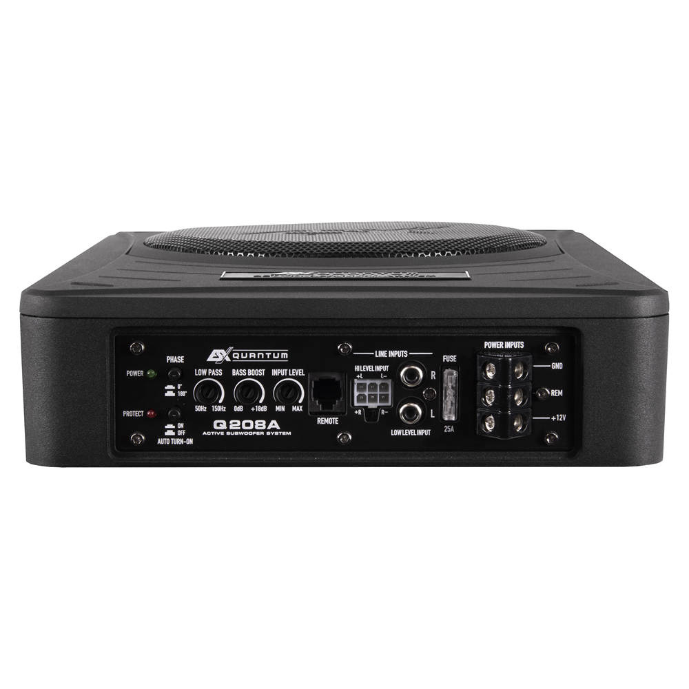Het koellichaam, gemaakt uit één stuk gegoten aluminium, heeft uitstekende koelingseigenschappen en laat de versterker niet warm van binnen worden. Het actieve systeem heeft alles aan boord dat zorgt voor een extra portie bas in het reeds geïnstalleerde audiosysteem en met de ingebouwde high-level inputs met automatische inschakelfunctie is het zeer eenvoudig te integreren in elk fabriekssysteem. Met de verlichte niveauregelaar kan de Q208A op afstand worden bediend vanaf de bestuurdersstoel.