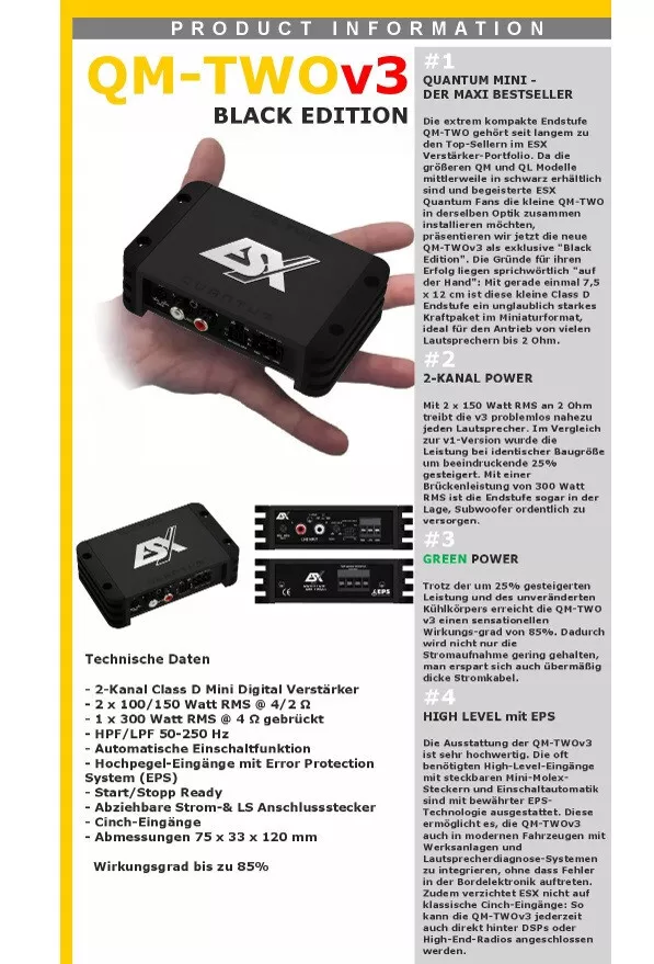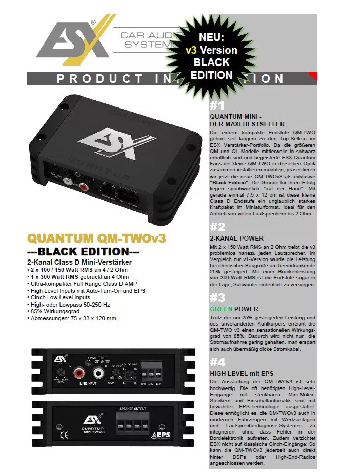 • 2 x 100 / 150 watt RMS bij 4 / 2 ohm