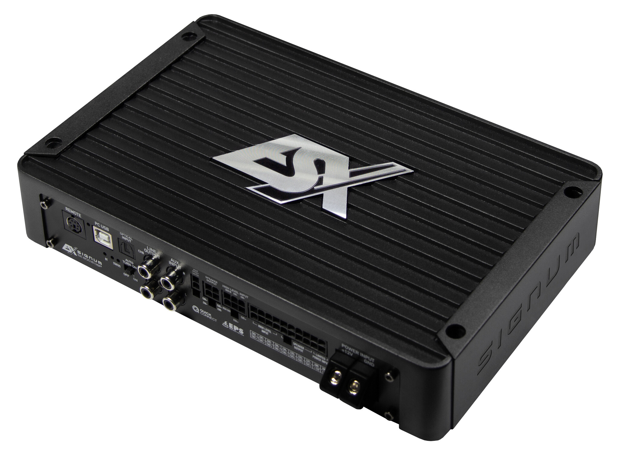 De SIGNUM SE800.6DSP eindversterker is momenteel het instapmodel voor hoogwaardige ESX DSP-audiotechnologie. Met 6 versterker- en 8 DSP-kanalen levert hij een uitstekende geluidskwaliteit met een enorme aanpasbaarheid. Dankzij de geïntegreerde Bluetooth® en bediening via app of pc is de bediening comfortabel en veelzijdig. Een bijzonder hoogtepunt is de automatisch schakelbare convertible-opstelling, die het geluid optimaal aanpast wanneer de bovenkant open is. Het geheel wordt gecompleteerd door een elegante en robuuste behuizing van gegoten aluminium. Het ideale controlecentrum om een geluidssysteem naar een hoger niveau te tillen.