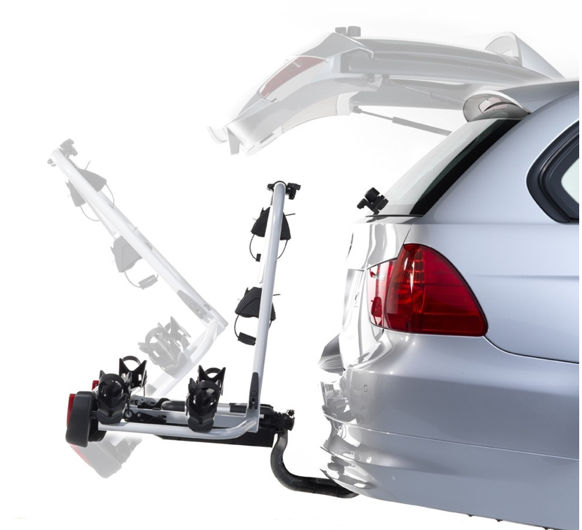 De handige kantelfunctie met voetbediening zorgt ervoor dat je altijd toegang houdt tot de kofferbak, zelfs wanneer de fietsen al gemonteerd zijn.