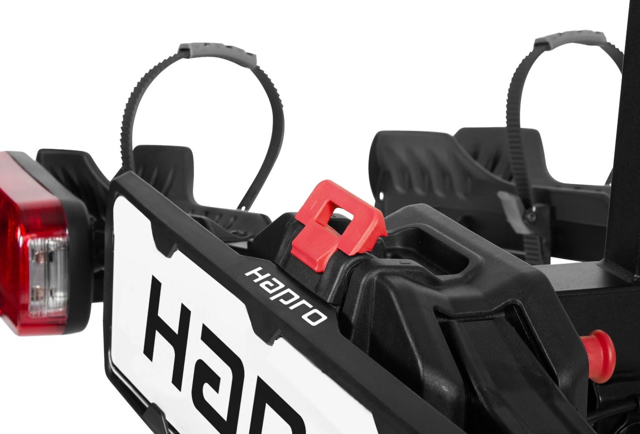 De Hapro Atlas SmartFold is voorzien van het eenvoudige ‘Easy-Grip’ bevestigingssysteem. Na het plaatsen op de trekhaak blijft de drager stabiel ‘hangen’ in de geplaatste positie. Hierdoor is het zeer eenvoudig om de drager verder te monteren en af te stellen door middel van de draaiknop en hendel. Het bevestigingssysteem is voorzien van een slot voor diefstalpreventie.