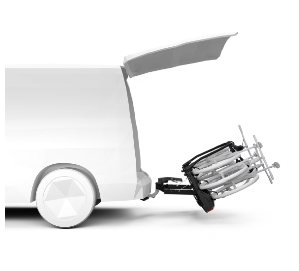 Thule VeloSpace 3 ondersteunt wielbasissen tot 1350 mm en individuele fietsgewichten tot 30 kg. Het stevige platform en doordachte constructie houden fietsen stabiel onderweg. De versie voor 3 fietsen biedt een slimme kantelfunctie die gemakkelijke toegang tot de kofferbak biedt. De kantelhoek kan worden veranderd van 50 tot 65° voor toegang tot de achterklep van compacte bestelwagens.