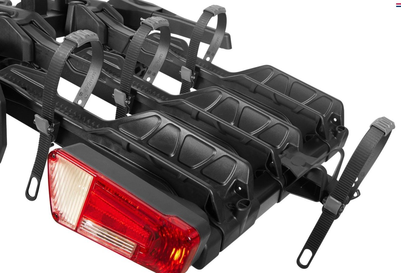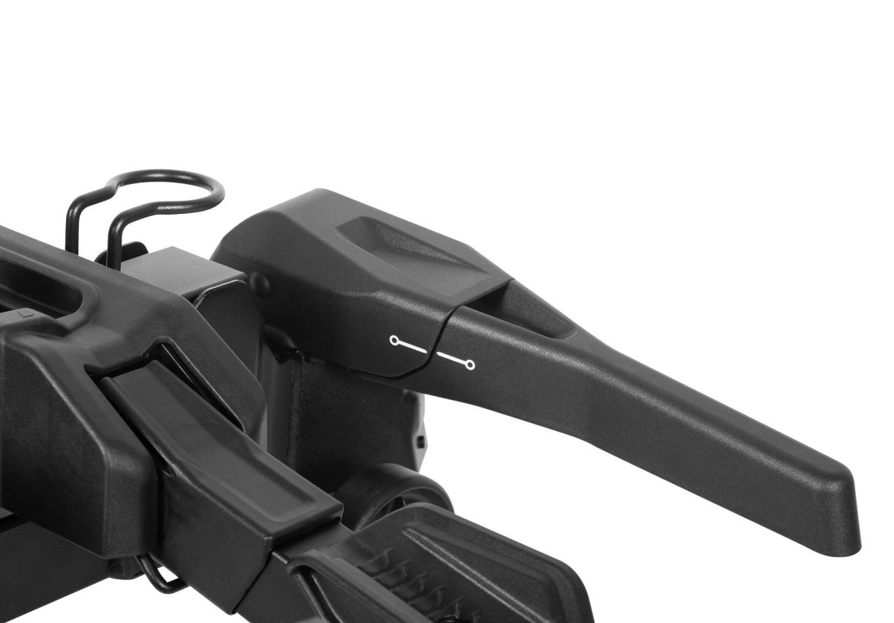 Dankzij het Premium-Grip snelbevestigingssysteem is het monteren van de drager op de trekhaak een kwestie van 1-2-3. Plaatsen, vergrendelen, zekeren en je bent klaar om te gaan! Toch nog wat verstellen? Dankzij de stabiliteit van de drager na het plaatsen op de trekhaak, doe je dit met de rode draaiknop eenvoudig en snel. Het bevestigingssysteem is voorzien van een slot voor diefstalpreventie.