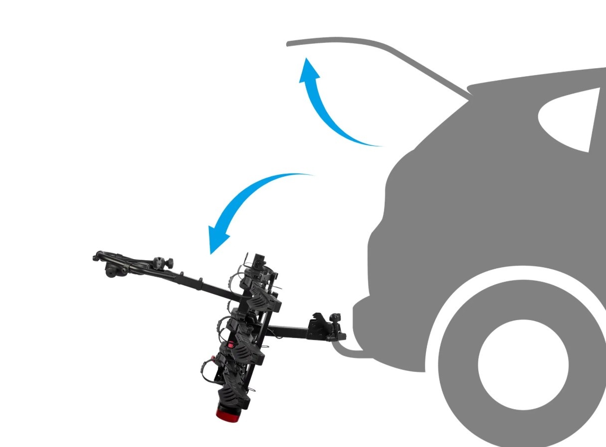 De Atlas SmartFold is zo ontworpen dat hij gekanteld kan worden, waardoor je toegang krijgt tot de achterklep zonder de fietsen eraf te halen.