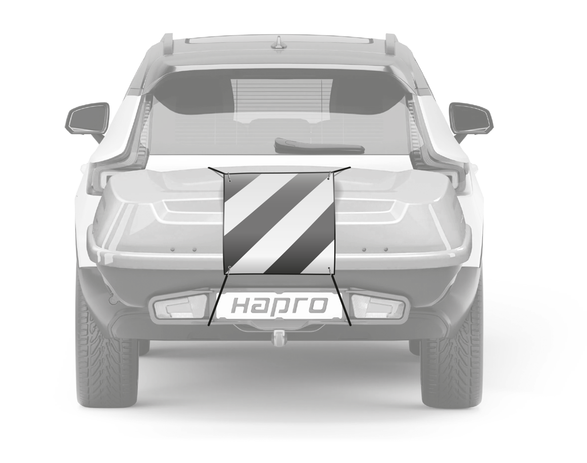 De speciaal ontwikkelde montageset voor een signaleringsbord op de Hapro Boxer trekhaakkoffer.