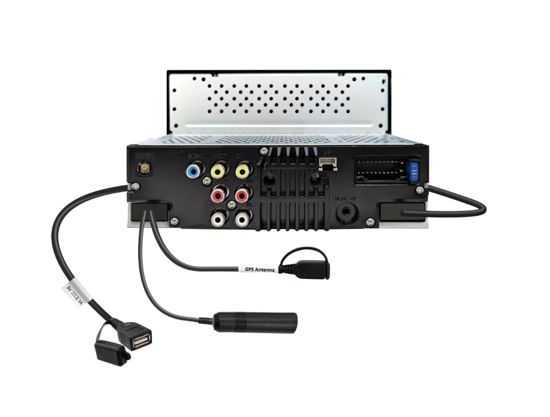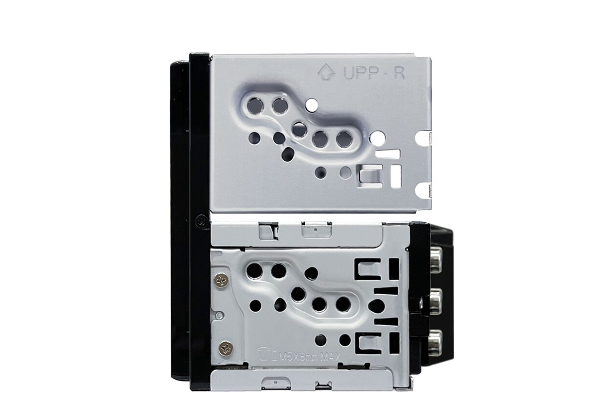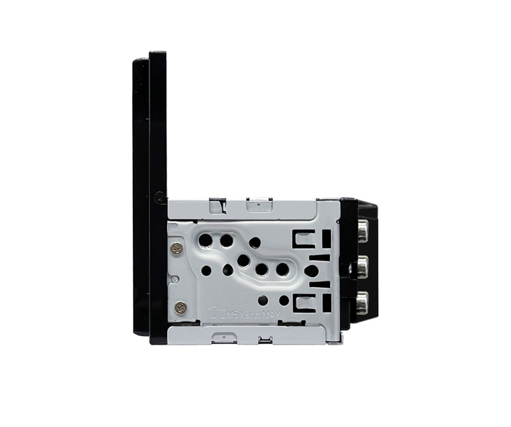 Ondanks het dubbel-DIN scherm is het L-vormige chassis slechts half zo groot als conventionele dubbel-DIN apparaten.