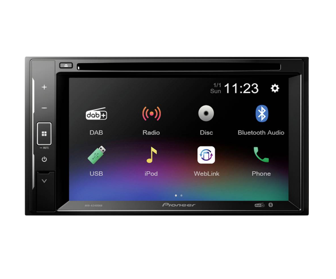 De AVH-A240DAB is een 2DIN multimediatoestel met 6.2″ touchscreen scherm voorzien van CD/Dvd-speler en front-USB aansluiting.