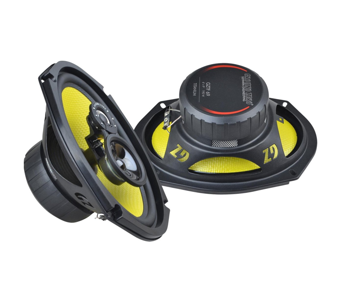 De Ground Zero GZTF 69 is een ovale hoedenplank speaker uit de Titanium-lijn bevat de onlangs geïntroduceerde nieuwe reeks coaxiale luidsprekers en composet luidsprekers met een gele 3D-HQPP-kegel voor een nog meer dynamische klank.