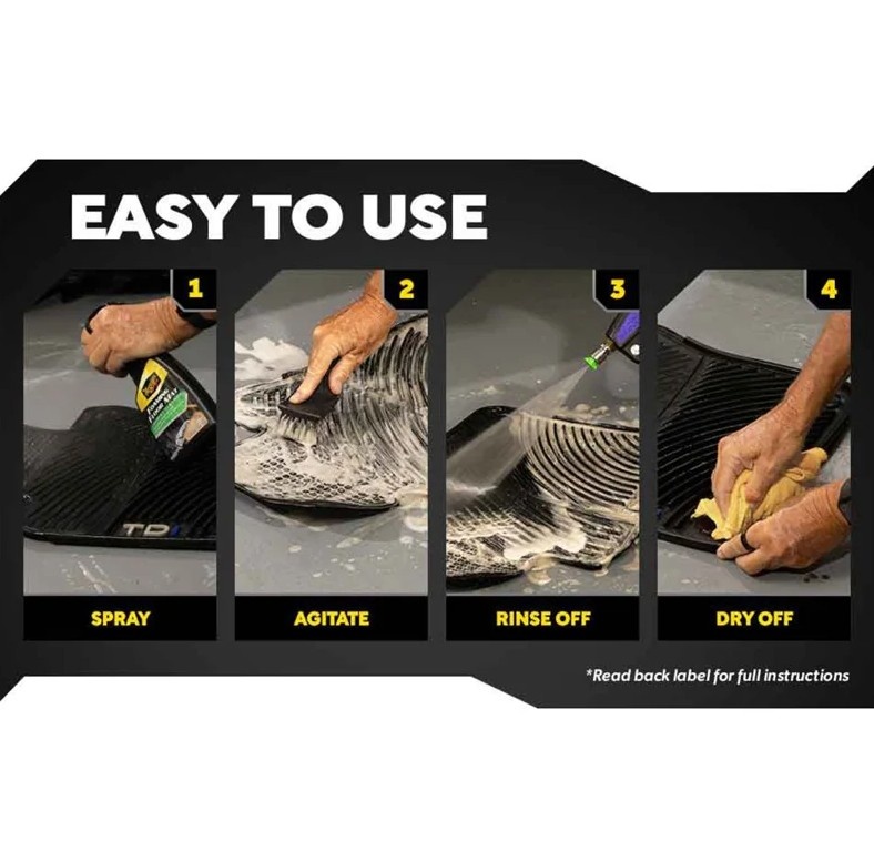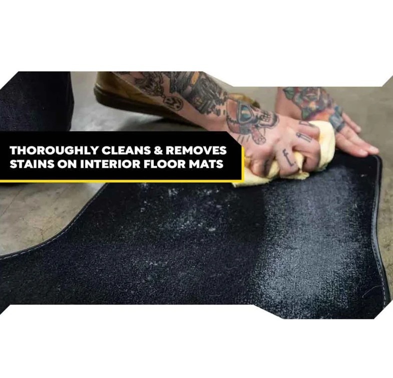 Deze sterk schuimende interieurreiniger verwijdert snel vuil, vet, aanslag en veel voedselvlekken van tapijten en vloermatten. Het is veilig en effectief op alle soorten autovloermatten, inclusief rubberen, synthetische en textielmatten. Na het reinigen zijn matten en bekleding schoon, verfrist en zien ze er weer als nieuw uit.