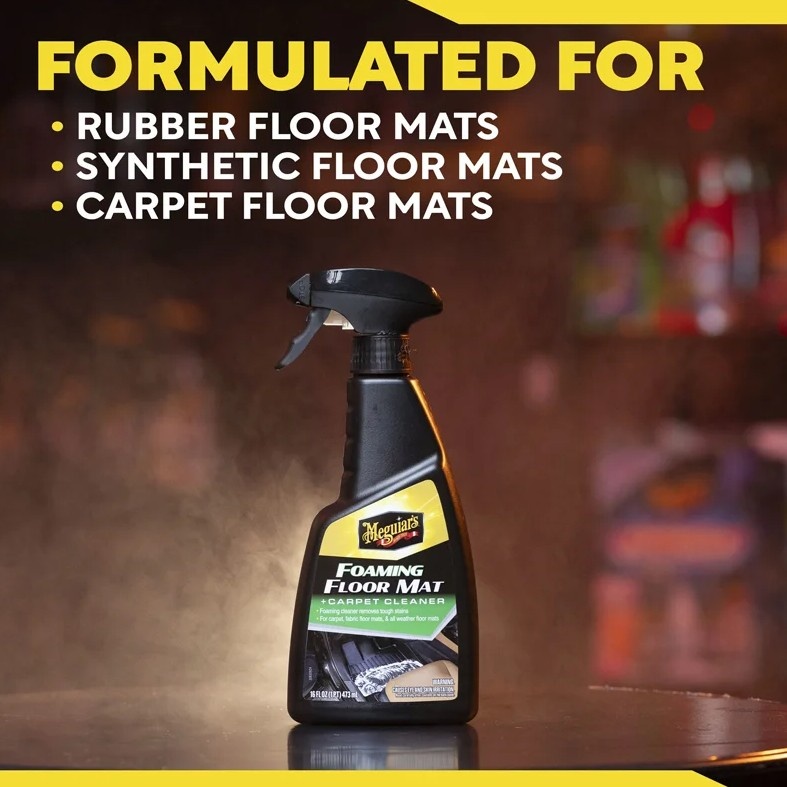 Meguiar's Foaming Floor Mat & Carpet Cleaner is een geavanceerde interieurreiniger die snel en effectief reinigt en professionele resultaten oplevert. Zijn de tapijten, bekleding of vloermatten in uw auto vervuild met vuil en resten? Geen probleem.